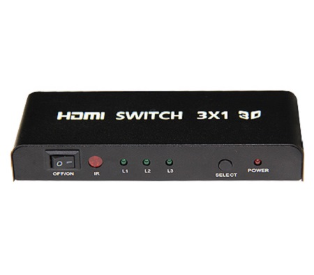 这款3X1 HDMI切换器可以支持3个HDMI端口通过遥控器或者手动按键切换到一路显示终端。此HDMI切换器可以支持所有高清格式包括720p,1080i,1080p。